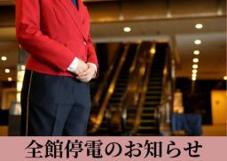このたび電気事業法に基づく法定点検の為、2025年6月3日(水)午前1時~午前5時30分までの間、ホテル内すべての電源を停止(全館停電)いたします。