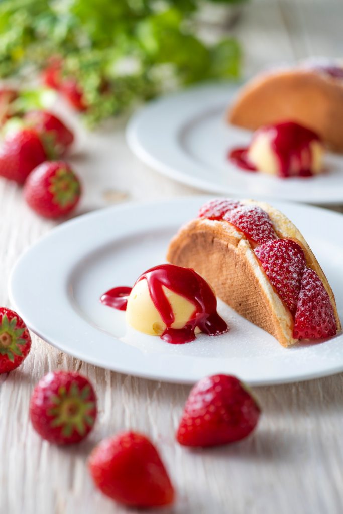🍓越後姫とあずきクリームのパンケーキ バニラアイス添え